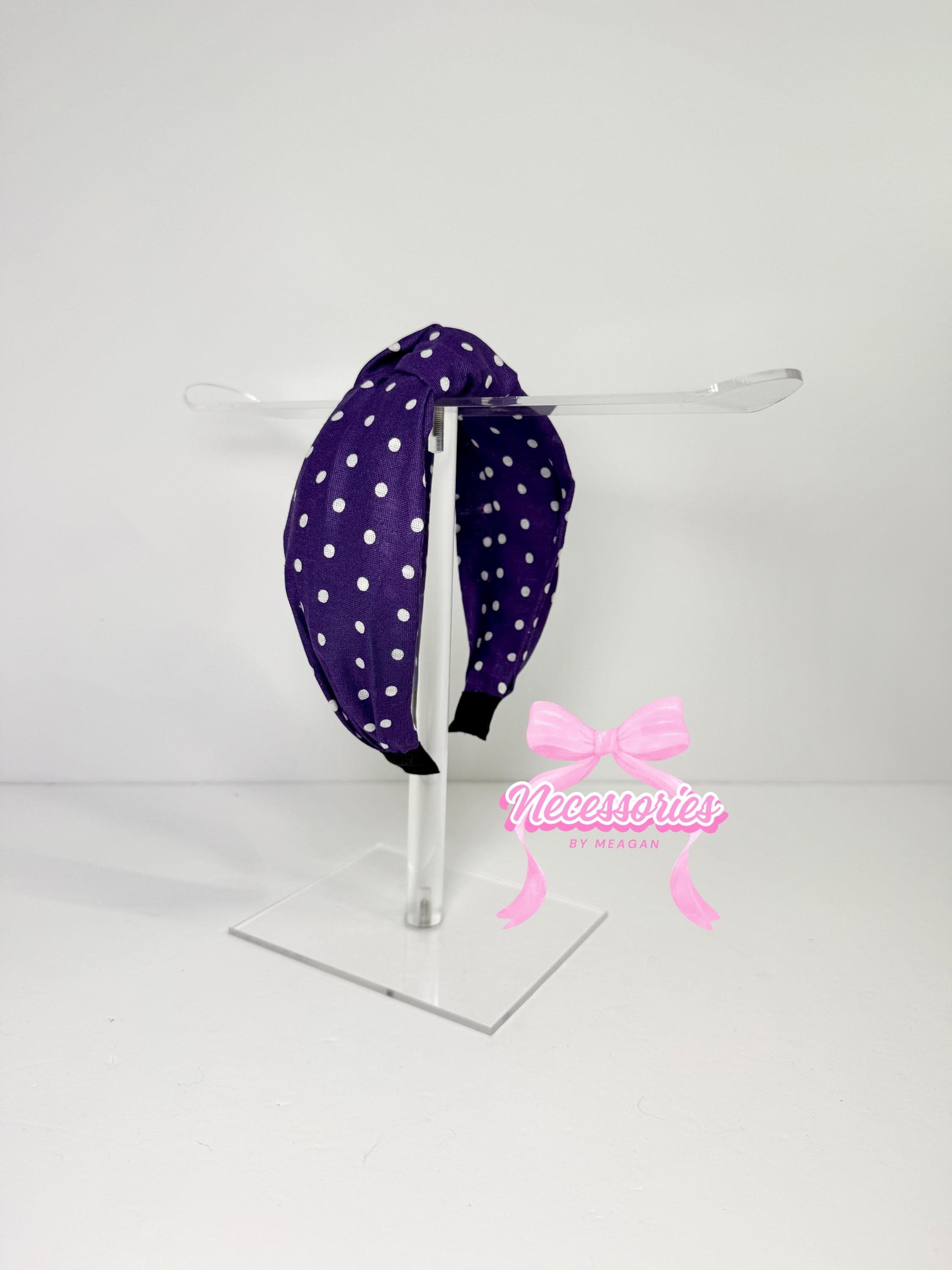 Brighten up your hair game with our Purple & White Polka Dot Knotted Headband! This fun and playful accessory features a vibrant purple fabric sprinkled with classic white polka dots — a timeless pattern that never goes out of style. The knotted detail on top adds extra charm and volume, giving you an effortlessly cute look whether you’re dressing up or keeping it casual.