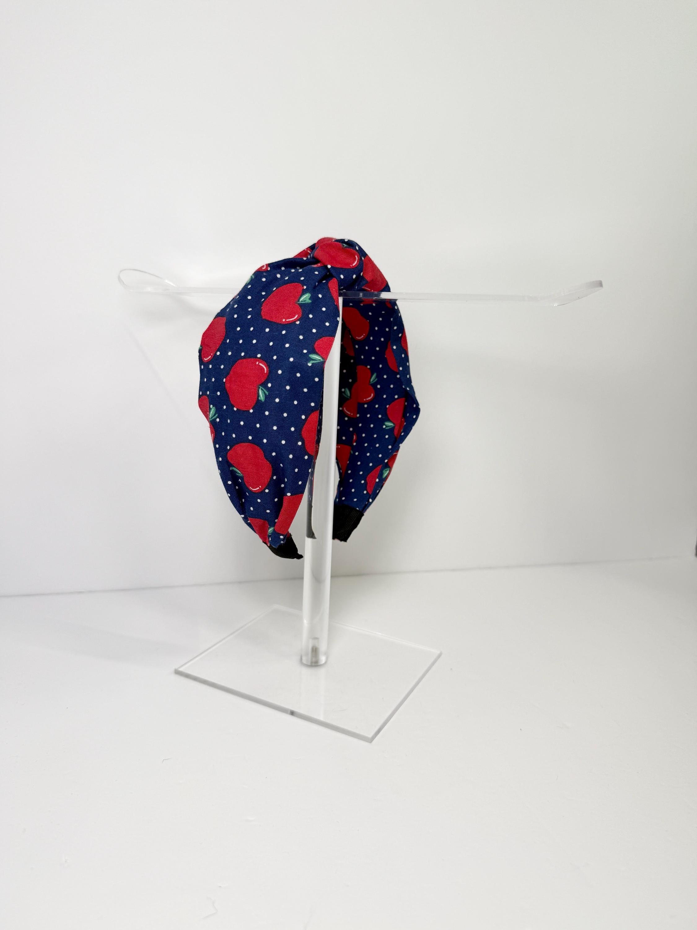 Show your appreciation for teachers—or rock a charming back-to-school look—with this Teacher’s Pet Apple Knotted Headband! Featuring adorable red apples scattered over a navy blue background with cute white polka dots, this sweet accessory adds a pop of fun to any outfit.