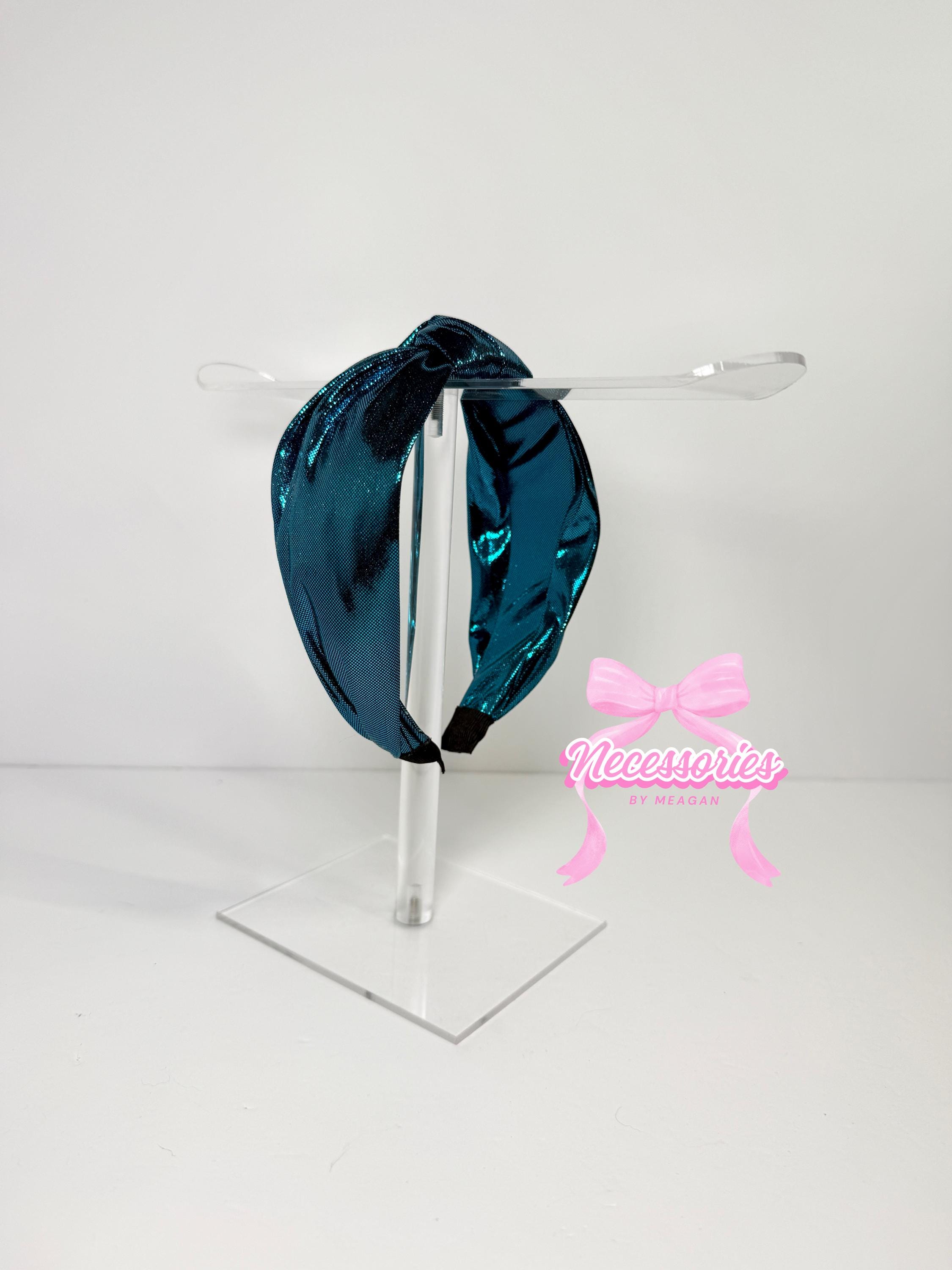 Make a bold statement with this stunning Teal Metallic Knotted Headband! Featuring a vibrant teal metallic fabric that gleams beautifully in the light, this headband instantly adds a pop of color and shine to any outfit.