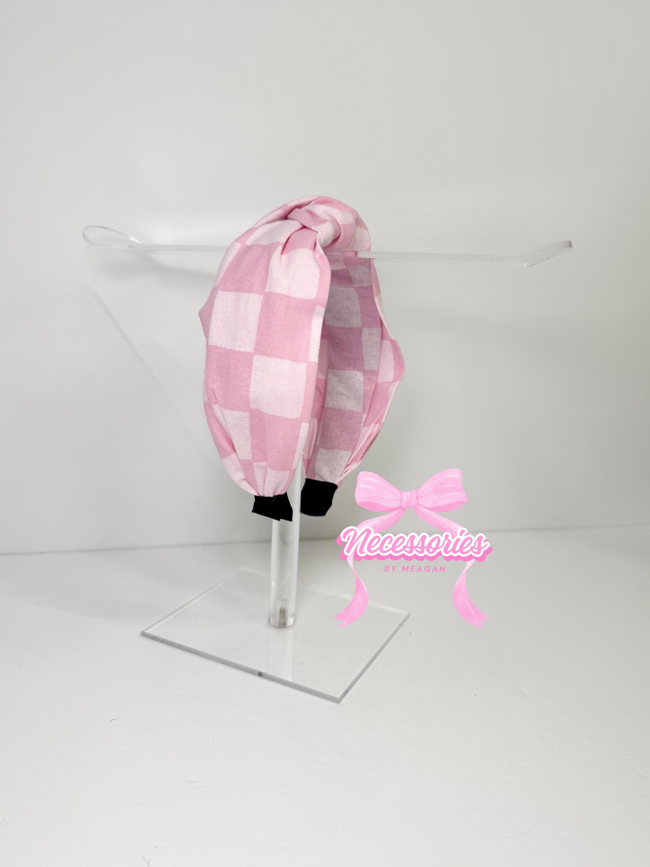 Pink Checkered Knotted Headband