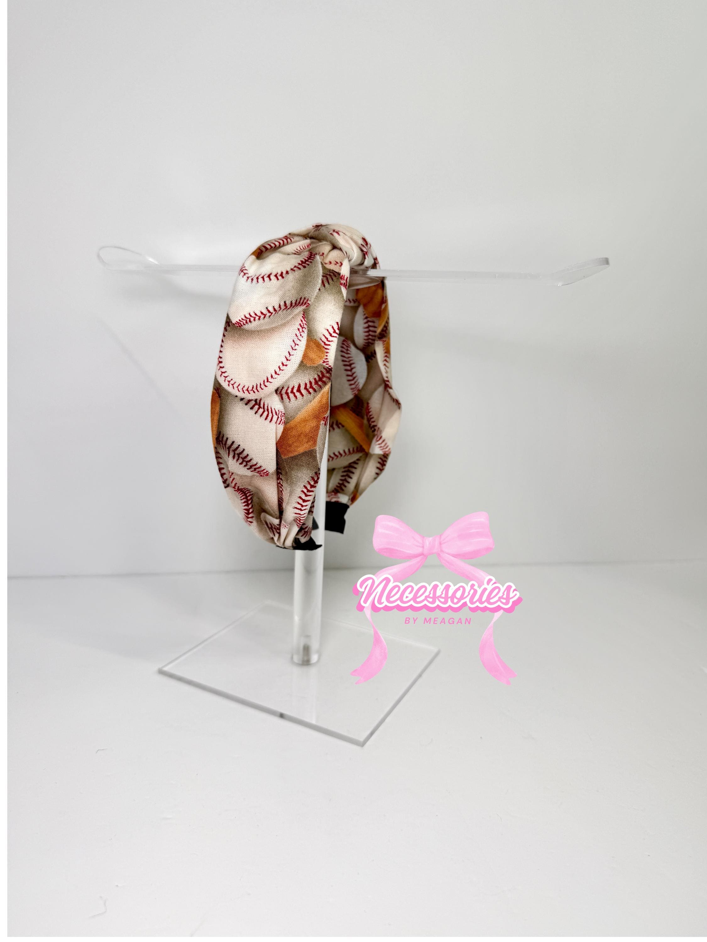 Step up to the style plate with the Baseball Knotted Headband! Featuring an all-over print of baseballs and crossed bats, this sporty accessory is a grand slam for any baseball fan. Whether you're headed to the ballpark or just love America's favorite pastime, this comfy and stylish headband is ready to play ball.
