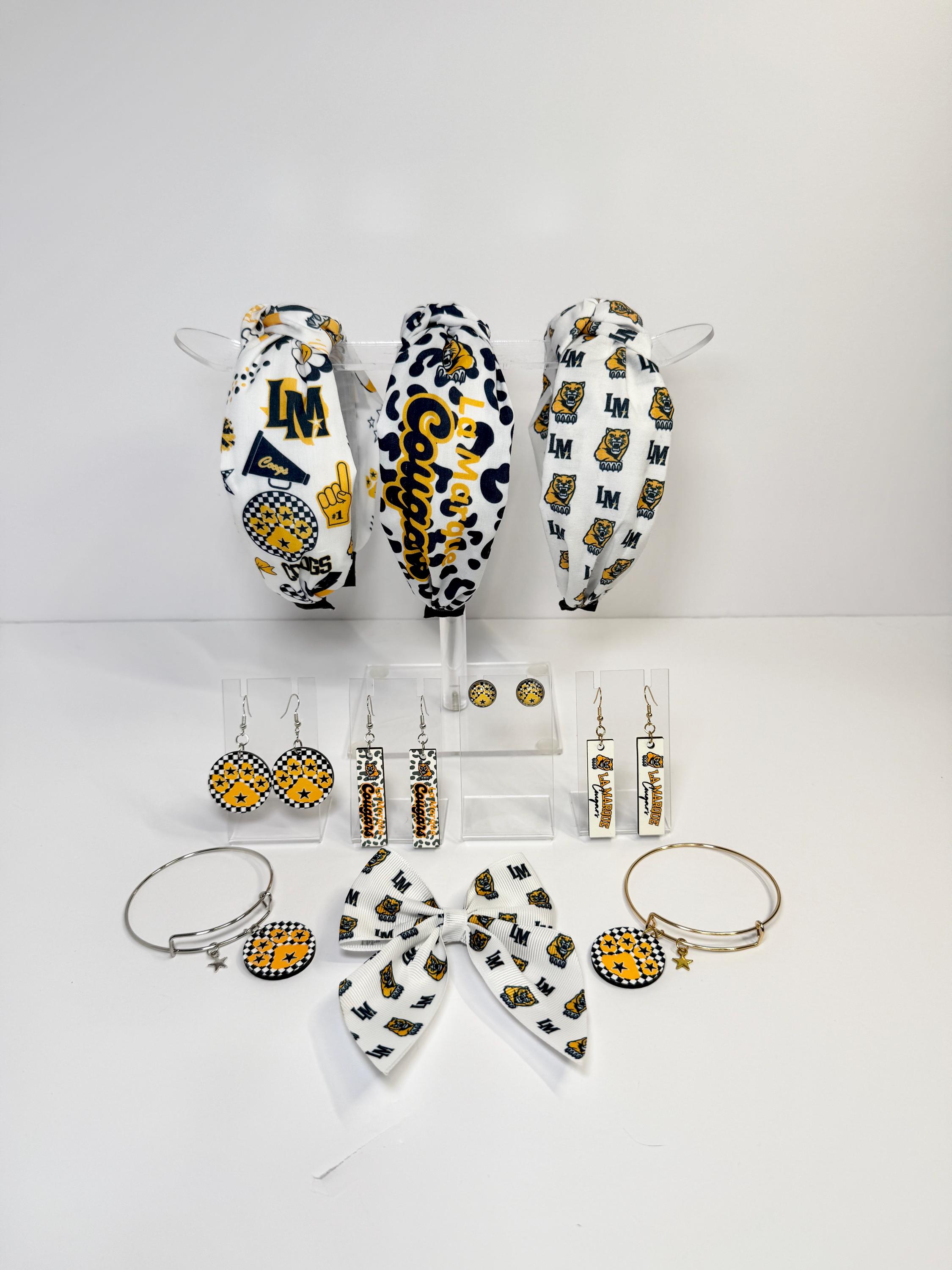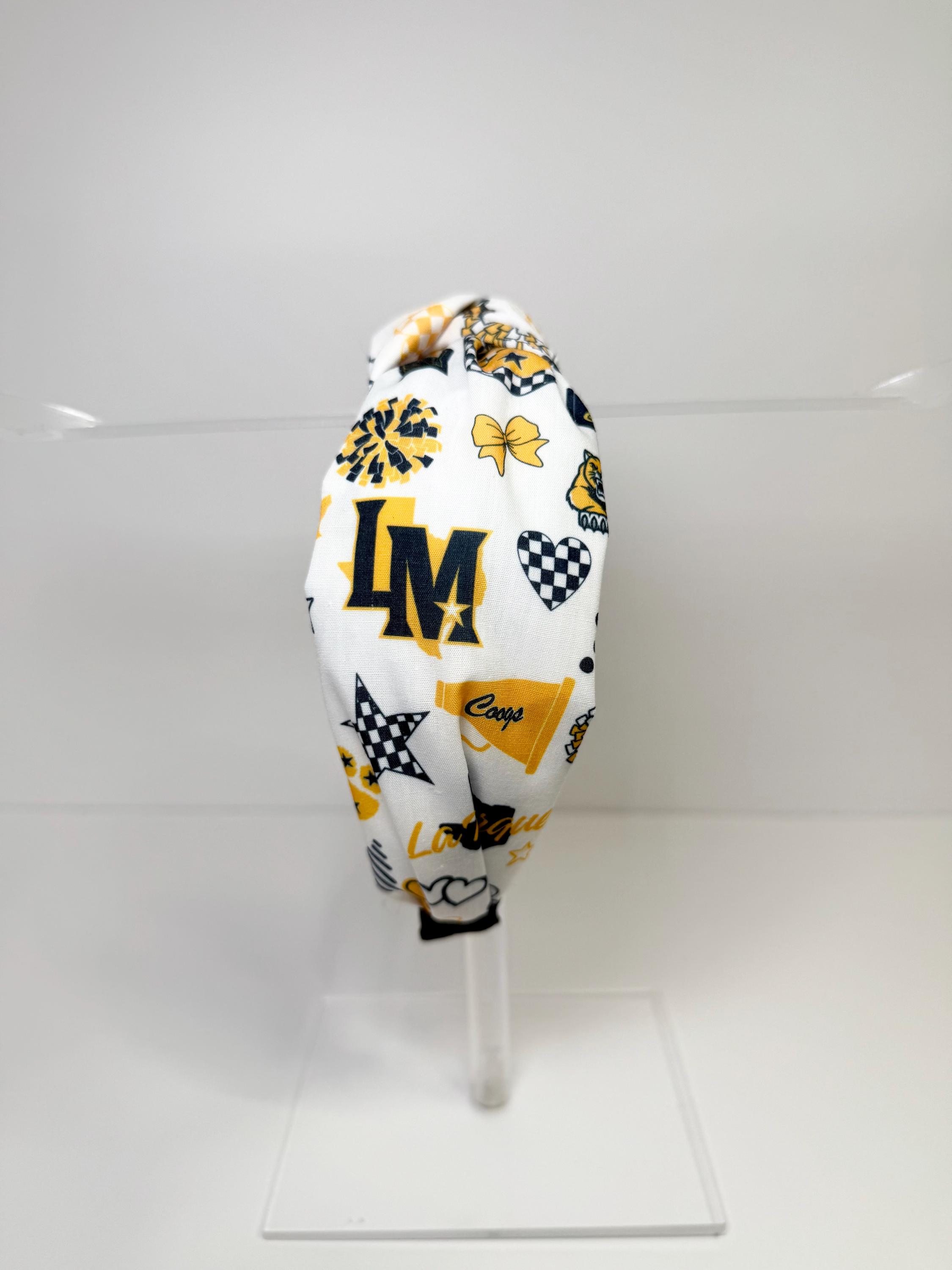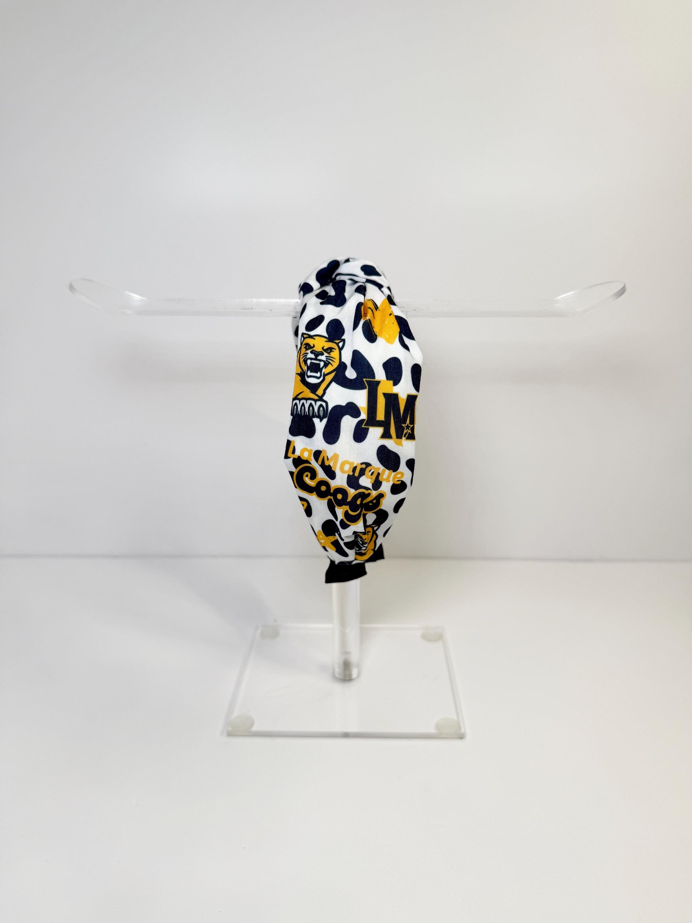Cheer loud and proud with the La Marque Cougars Knotted Headbands! Available in three spirited designs—mascot print, cheer-themed, and bold logo mix—each headband showcases the La Marque Cougars colors of navy, gold, and white. The trendy knotted top adds a fashionable twist while the soft, comfortable fit makes them perfect for game day, pep rallies, or everyday wear to show your school pride.
