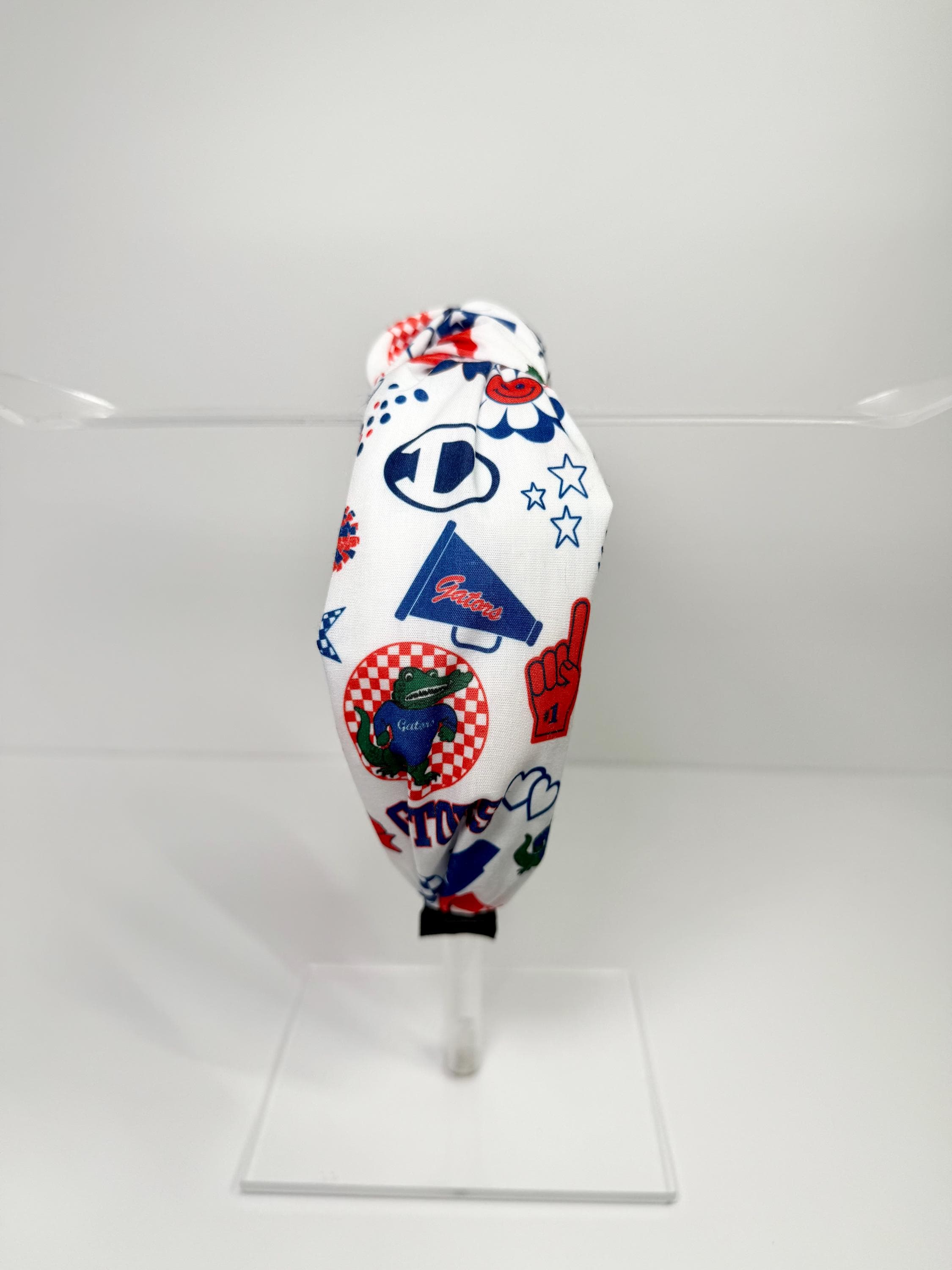 Show your team pride with the Dickinson Gators Knotted Headbands! Available in three spirited designs—mascot print, cheer-themed, and bold logo mix—each headband features the Gators’ signature red, white, and blue colors. The trendy knotted top adds a fashionable touch, while the soft, comfortable fit makes them perfect for game days, pep rallies, or everyday wear to represent your team in style.