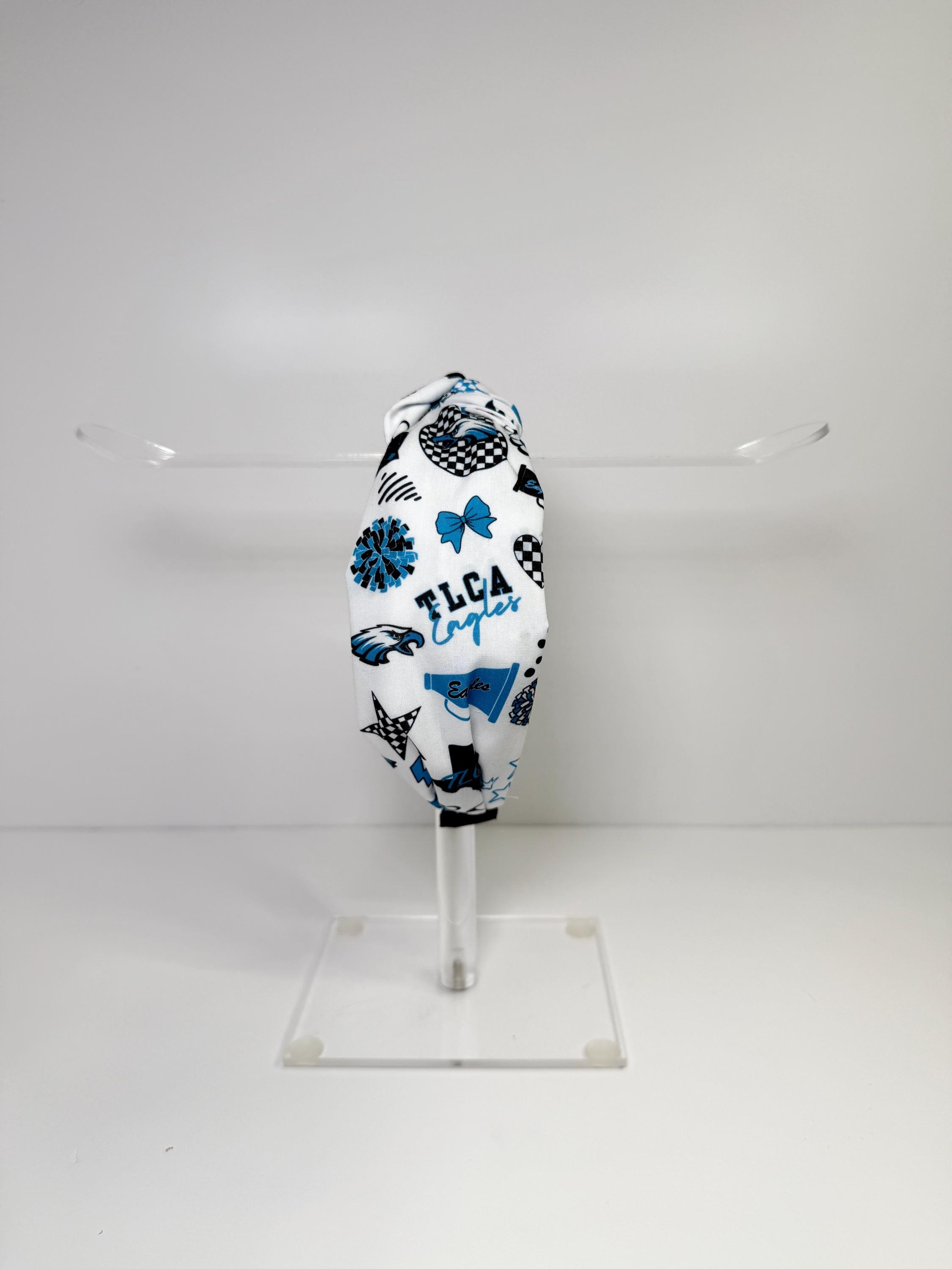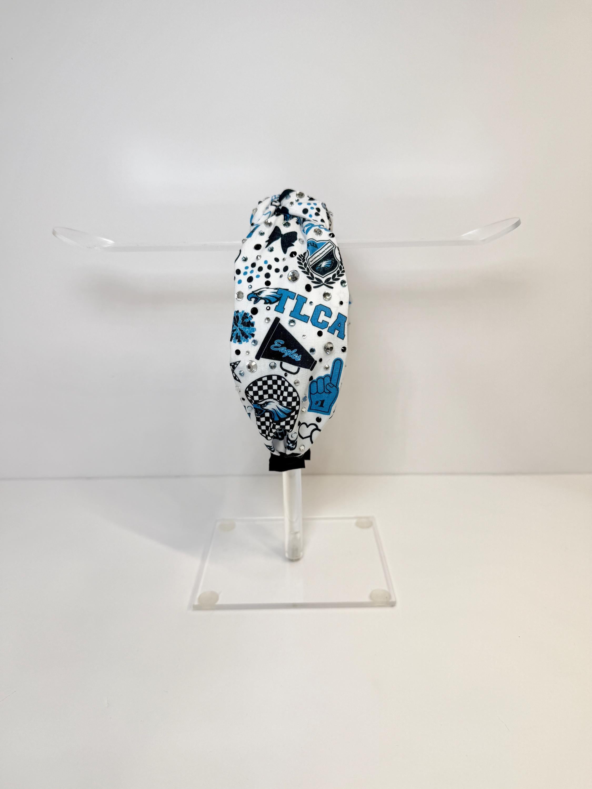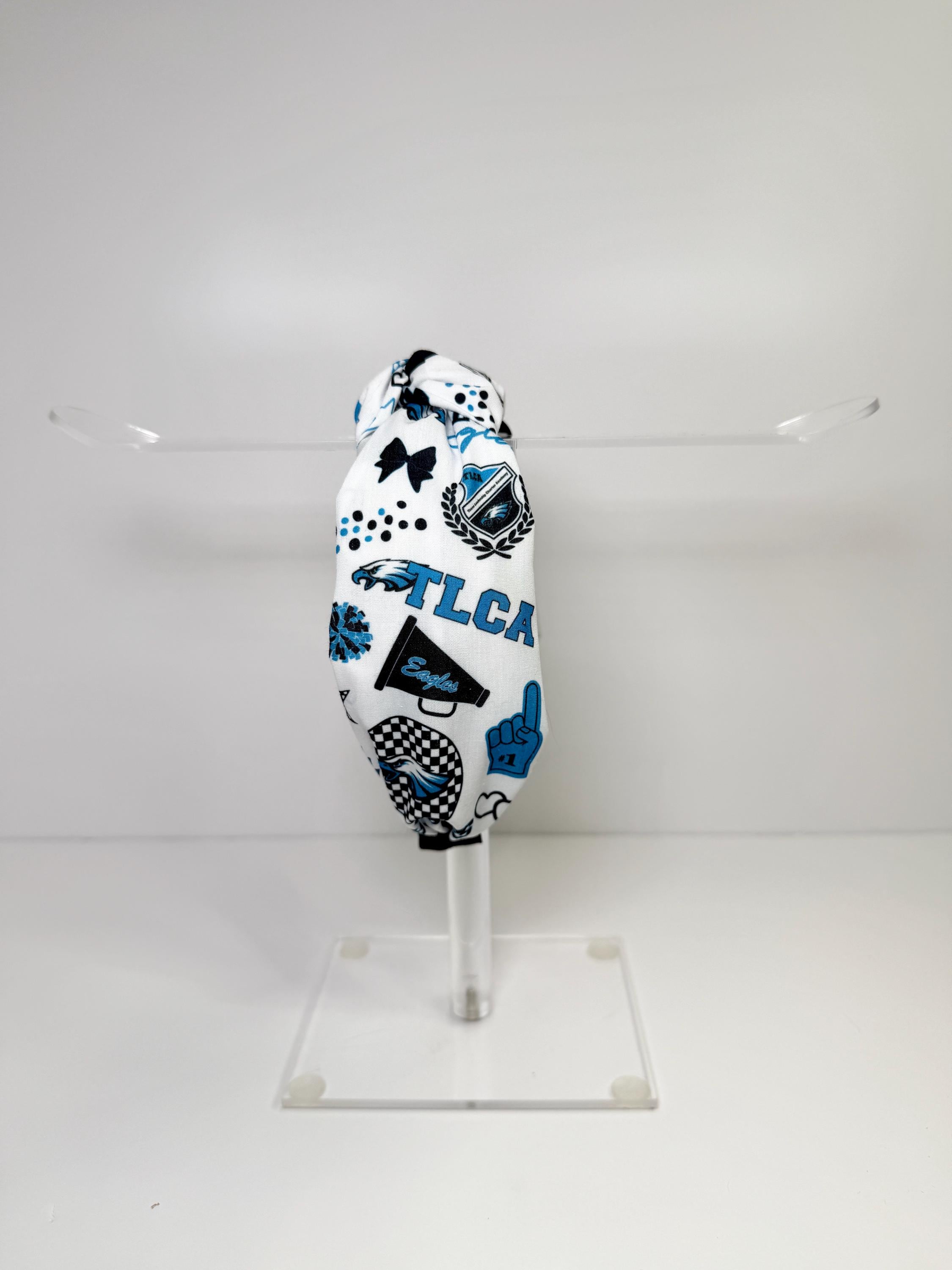 Fly high with the TLCA Eagles Knotted Headbands! Available in two spirited designs—logo print and cheer-themed—each headband highlights the Eagles’ bold blue, black, and white colors. The trendy knotted top adds a fashionable twist, while the soft, stretchy fit ensures comfort for game days, pep rallies, or everyday wear to show off your school pride.