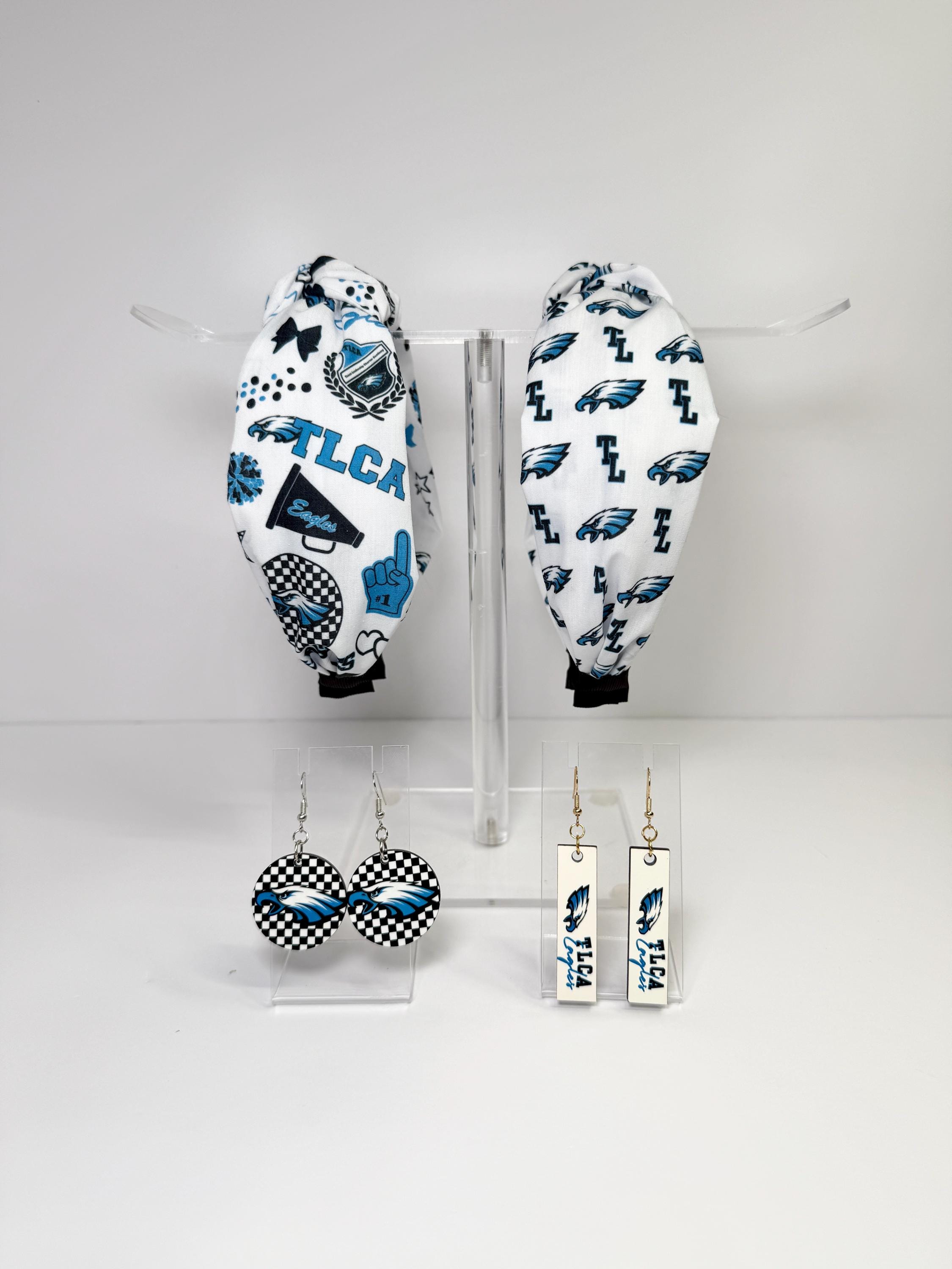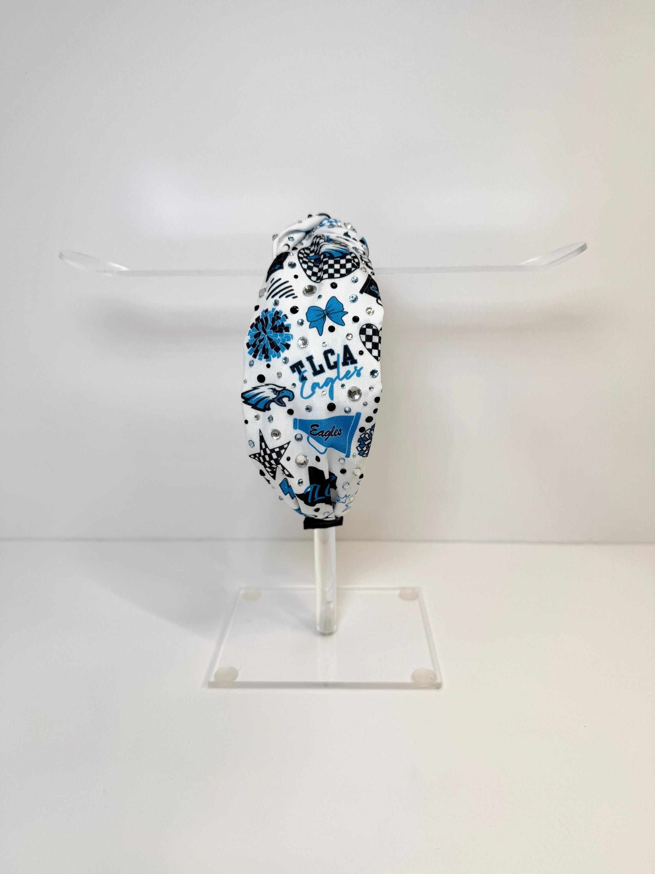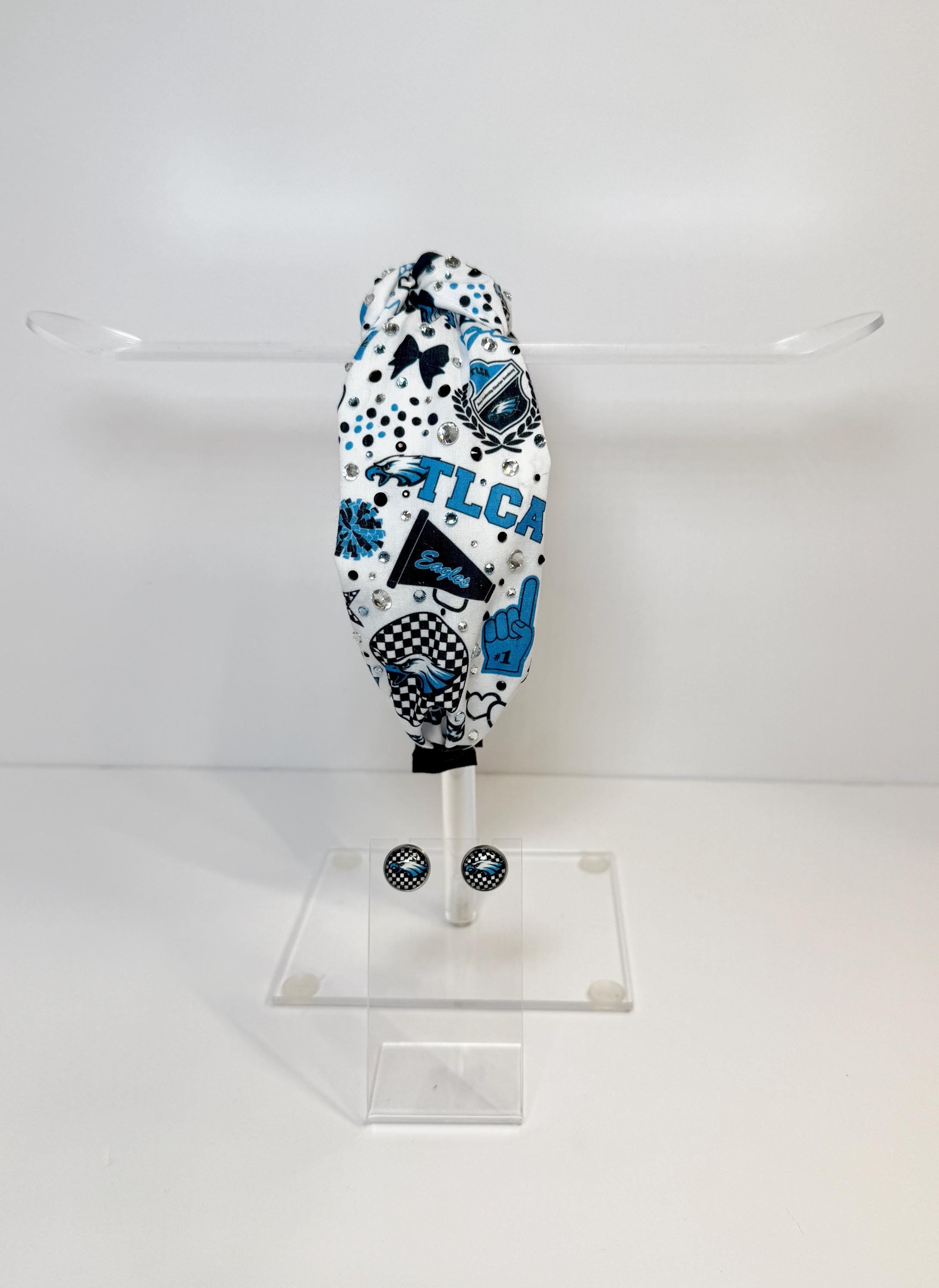Fly high with the TLCA Eagles Knotted Headbands! Available in two spirited designs—logo print and cheer-themed—each headband highlights the Eagles’ bold blue, black, and white colors. The trendy knotted top adds a fashionable twist, while the soft, stretchy fit ensures comfort for game days, pep rallies, or everyday wear to show off your school pride.