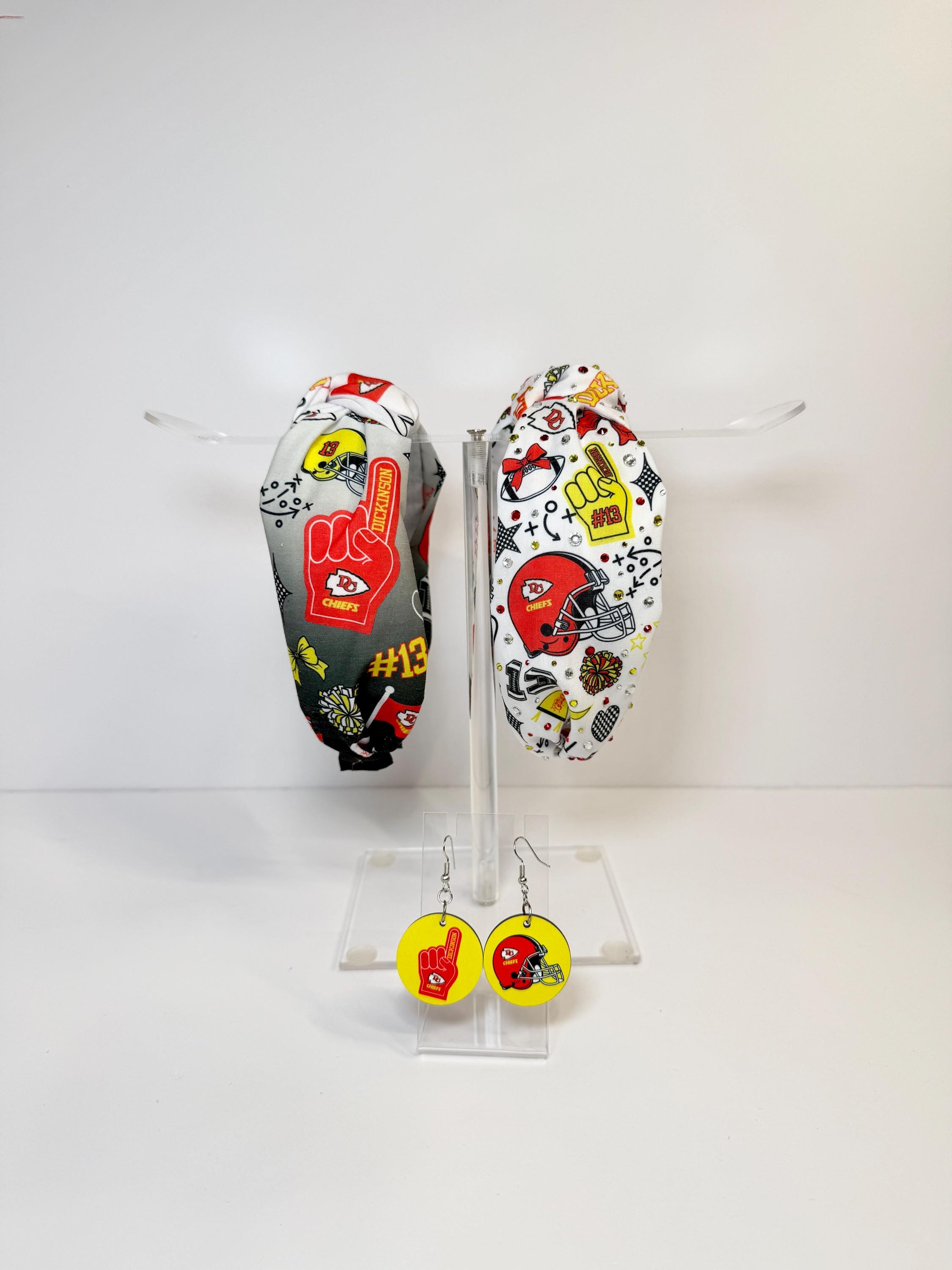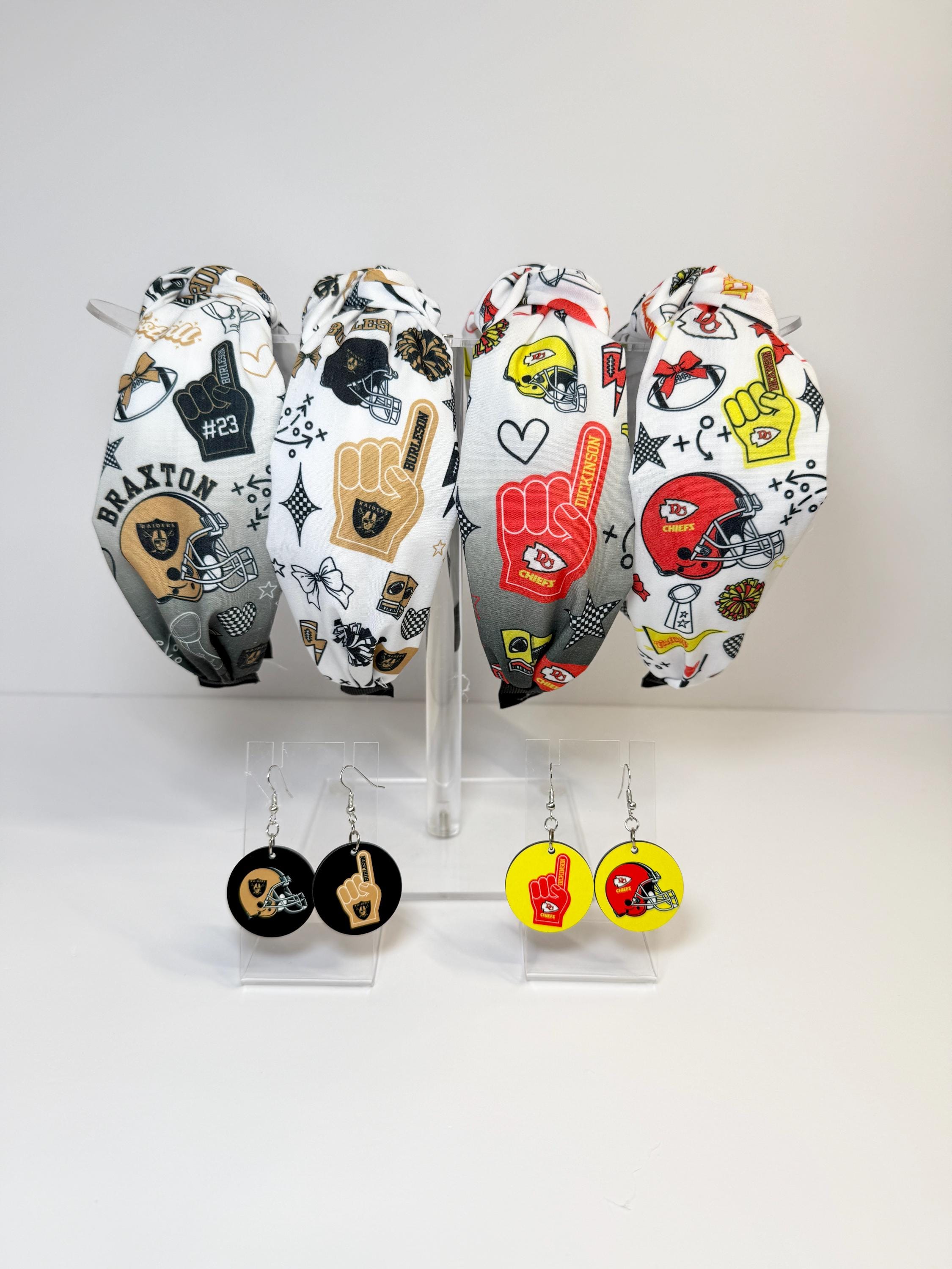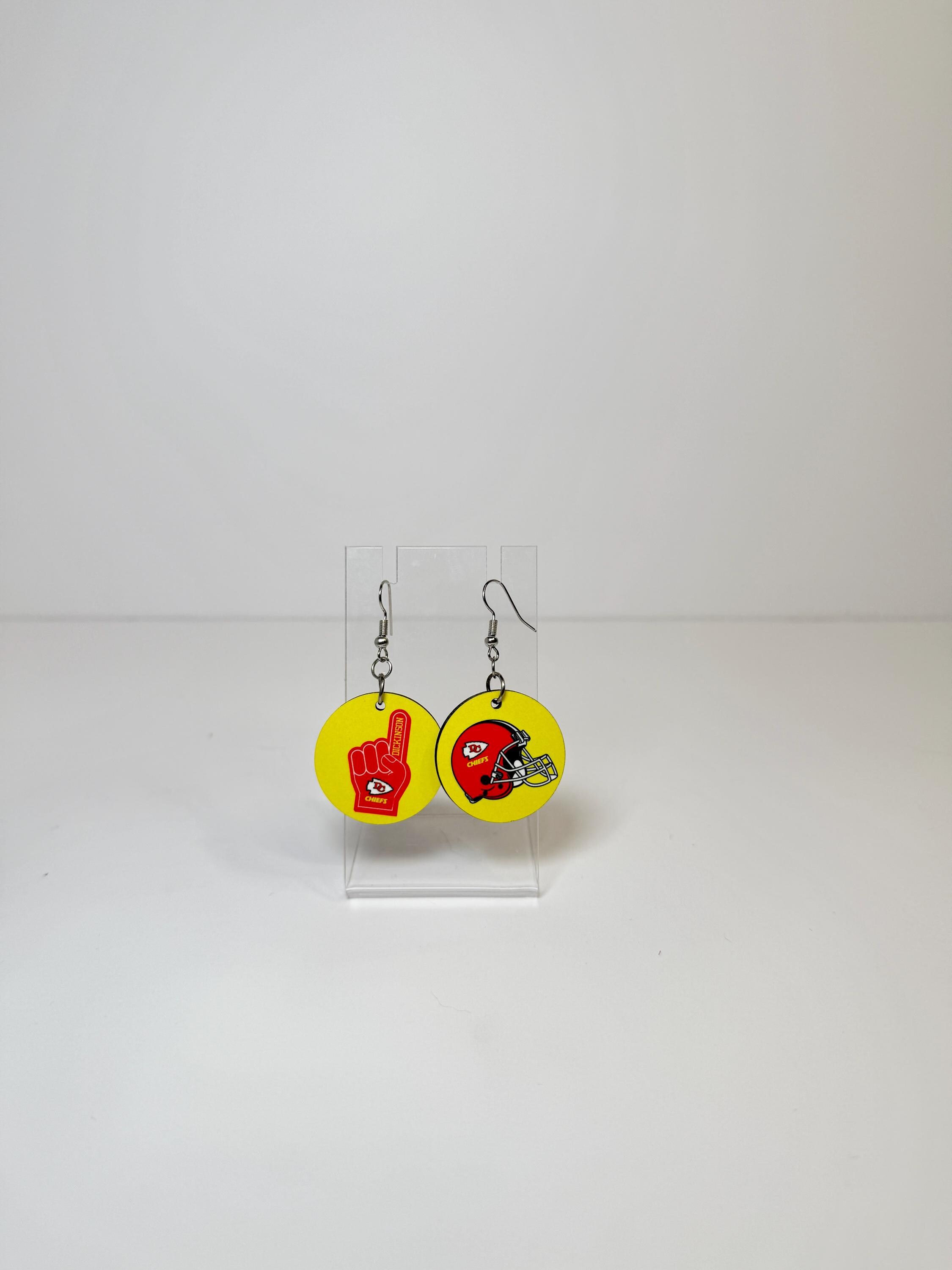 Show your spirit with the Dickinson Chiefs Earrings! Featuring bold red and yellow designs with spirited icons like foam fingers and football helmets, these earrings are the perfect way to cheer on the Chiefs. Lightweight and comfortable, they’re great for game days, pep rallies, or everyday wear. Plus, personalization is available—add a name or special touch to make them uniquely yours or a thoughtful gift for your favorite Chiefs fan!