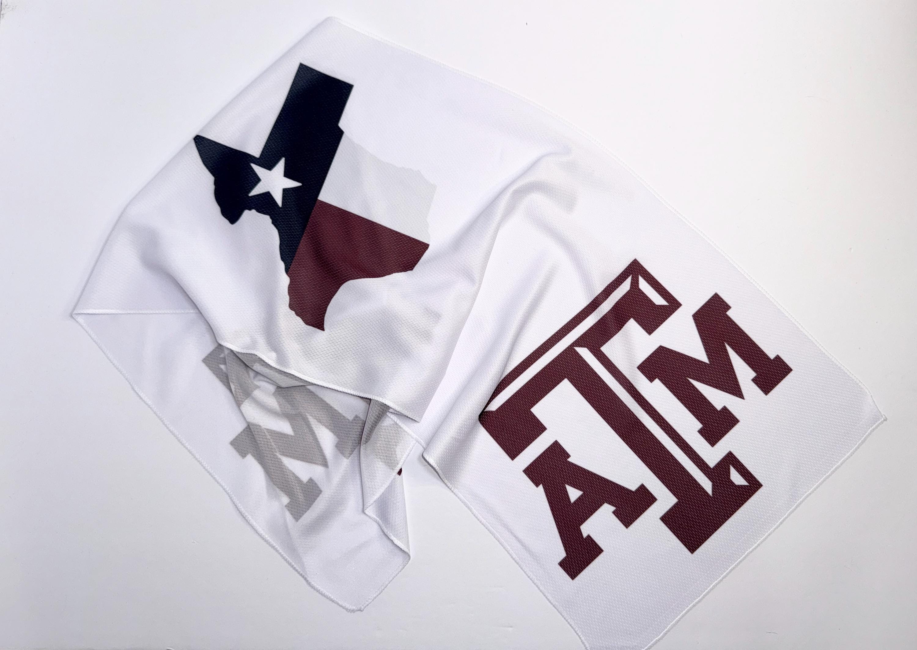 Show off your Aggie pride while staying cool with this Texas A&M Cooling Towel! Measuring 40" L x 12" W, this lightweight, breathable towel is perfect for workouts, tailgating, or game days. Designed with the Texas state flag and bold Texas A&M logo, it brings team spirit and comfort wherever you go. Just wet, wring, and snap to activate instant cooling!