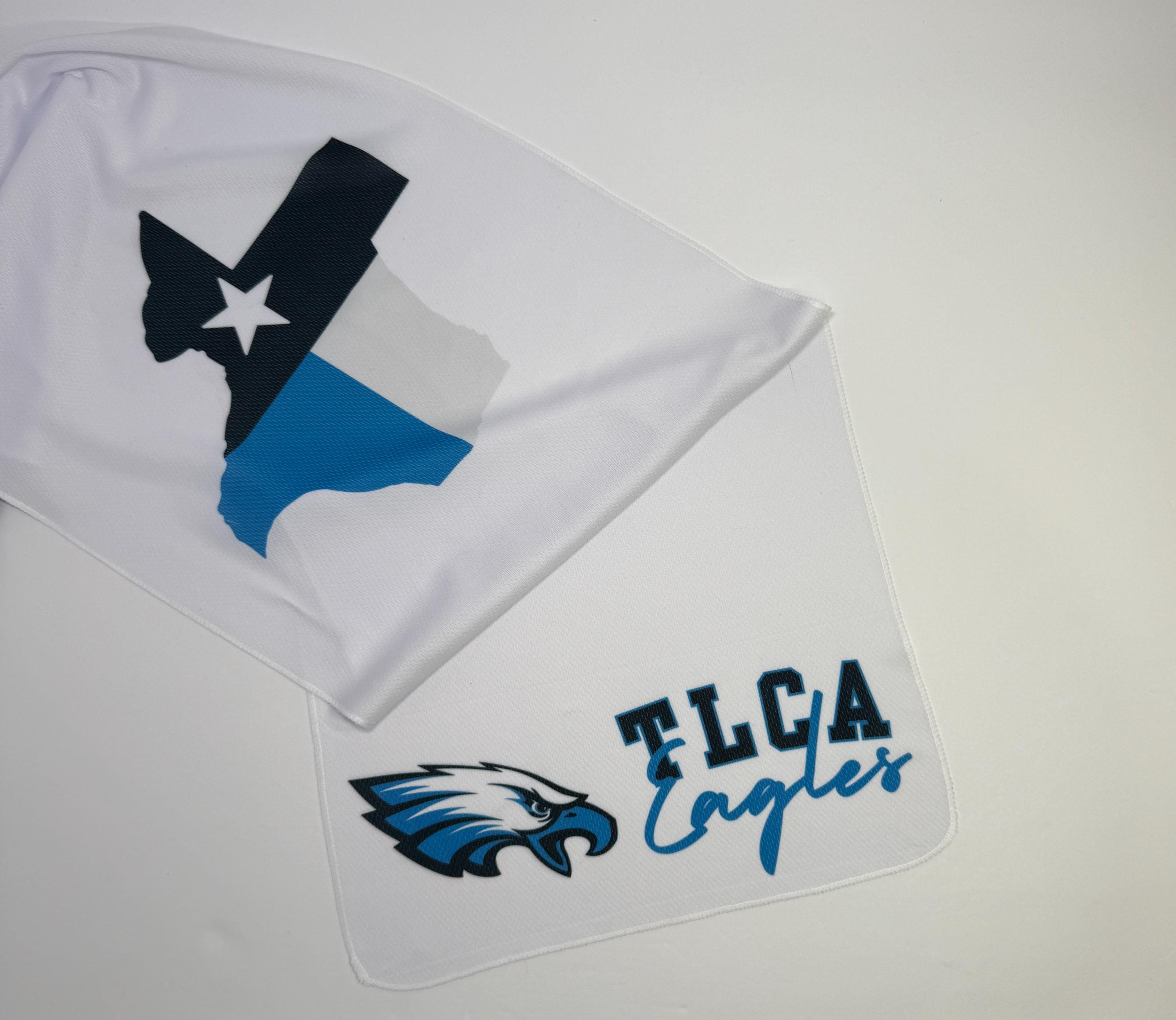 Stay cool while showing off your TLCA Eagles pride! This premium cooling towel features the bold TLCA Eagles logo and text alongside a Texas state design in black, white, and blue. Measuring 40" L x 12" W, this lightweight towel is perfect for workouts, sports, or cheering on the Eagles. Just wet, wring, and snap to activate the cooling effect for instant relief.