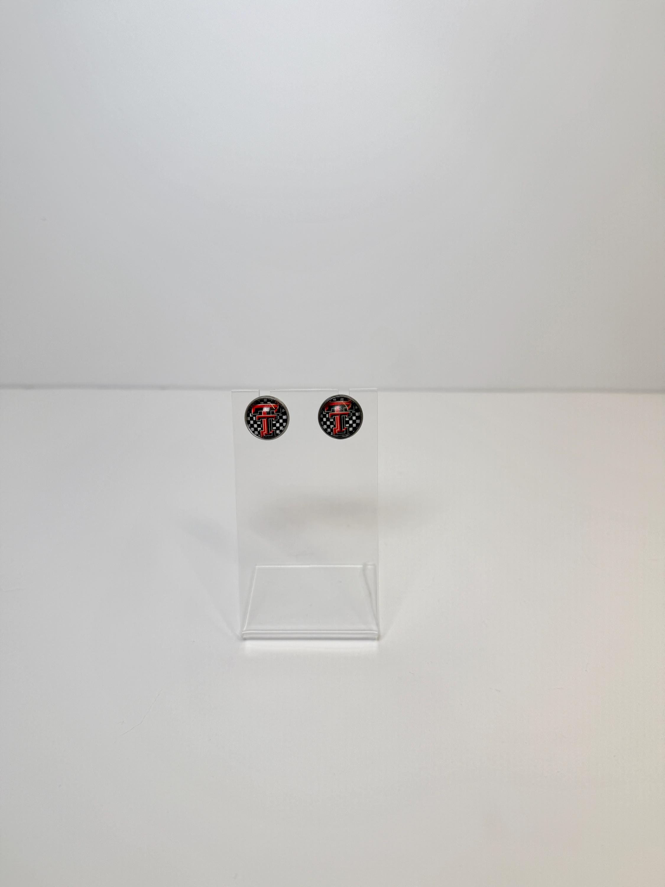 Rep your Red Raiders pride with these Texas Tech stud earrings! Featuring the bold Double T logo against a sleek black checkered background, these earrings are lightweight, durable, and perfect for showing your school spirit at games, on campus, or every day.