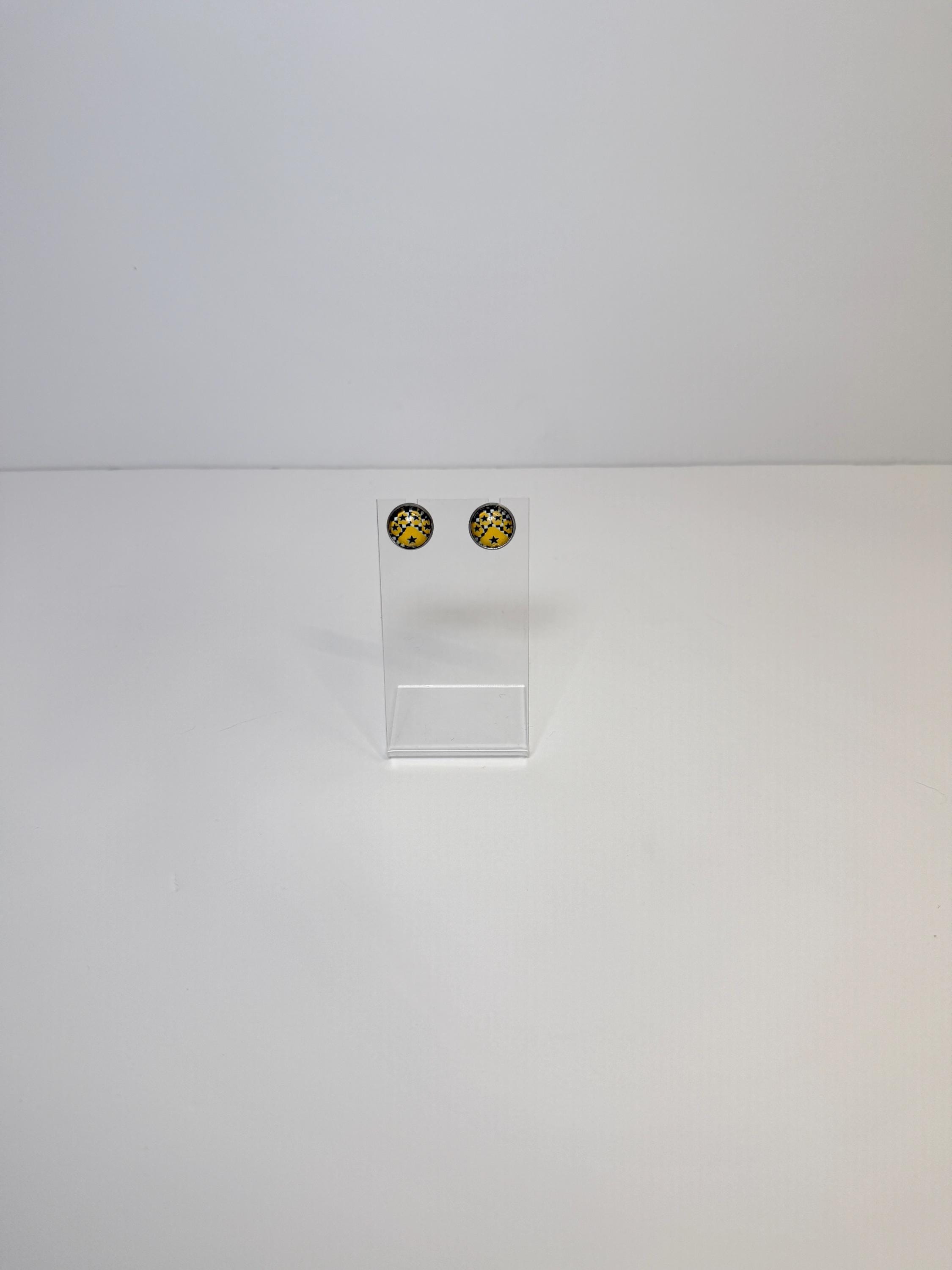 Cheer on your team in style with these La Marque Cougars stud earrings! Designed with a navy blue checkered background and the Cougar logo, these lightweight studs are the perfect way to show your school spirit on game day or any day.