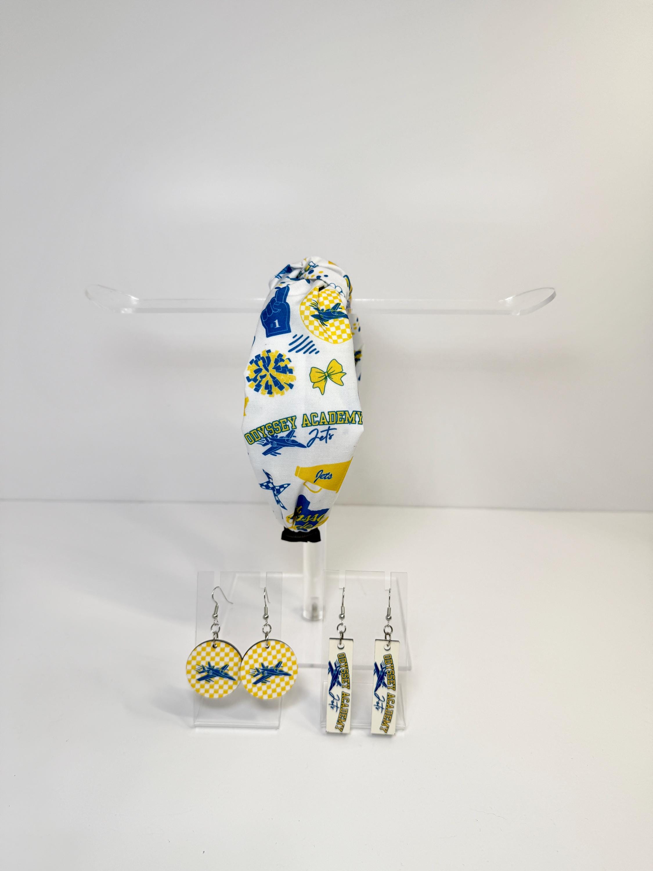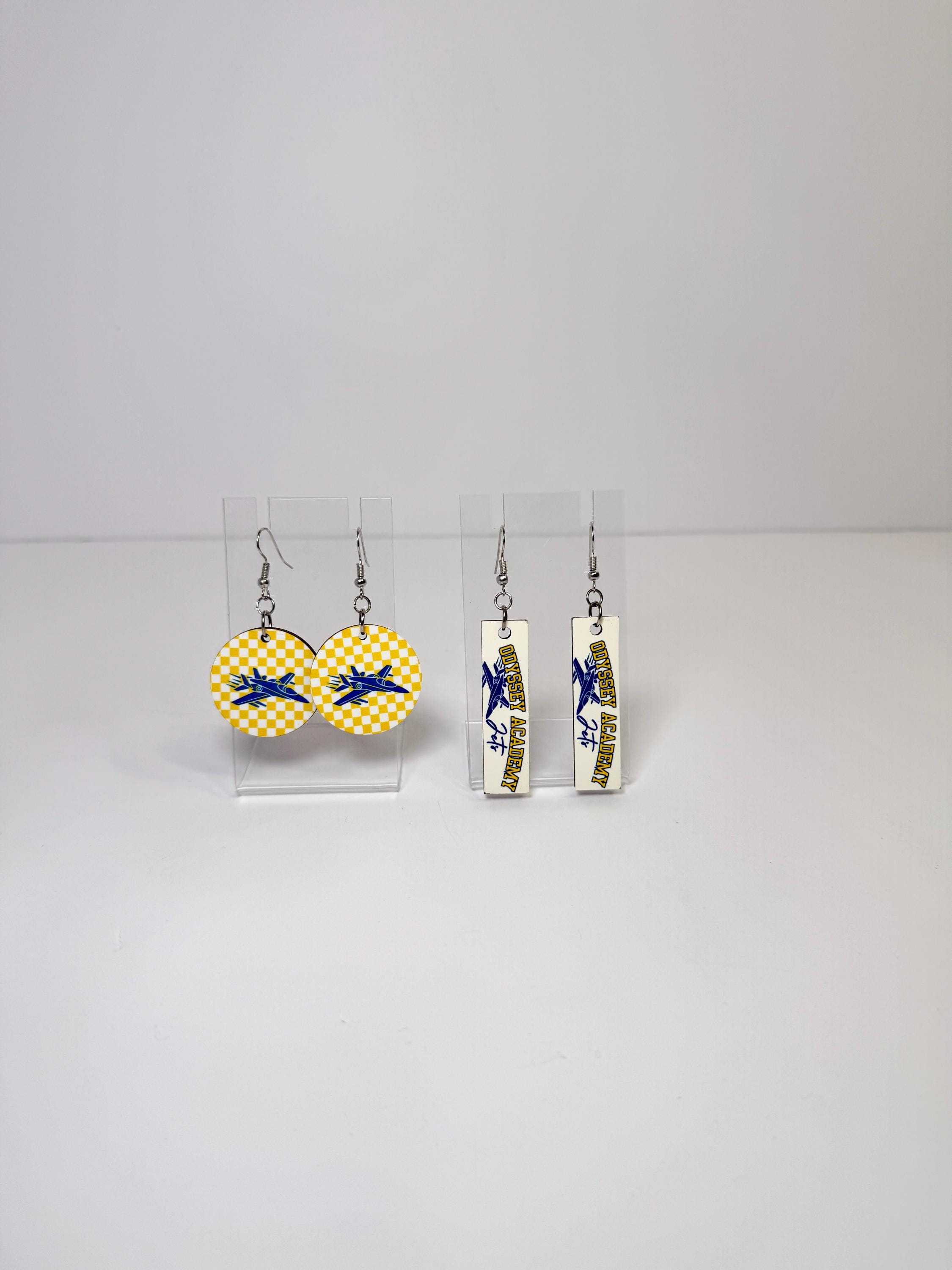 Take off with your Odyssey Academy Jets pride! These earrings are handmade and printed in my home workshop to capture your school spirit with a fun and polished touch. Choose from earrings or adjustable bangle charm bracelets for the perfect spirit accessory.