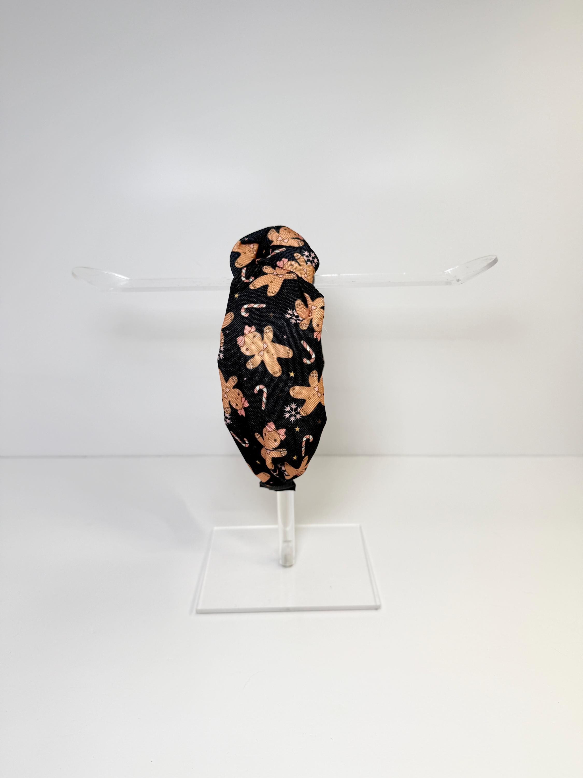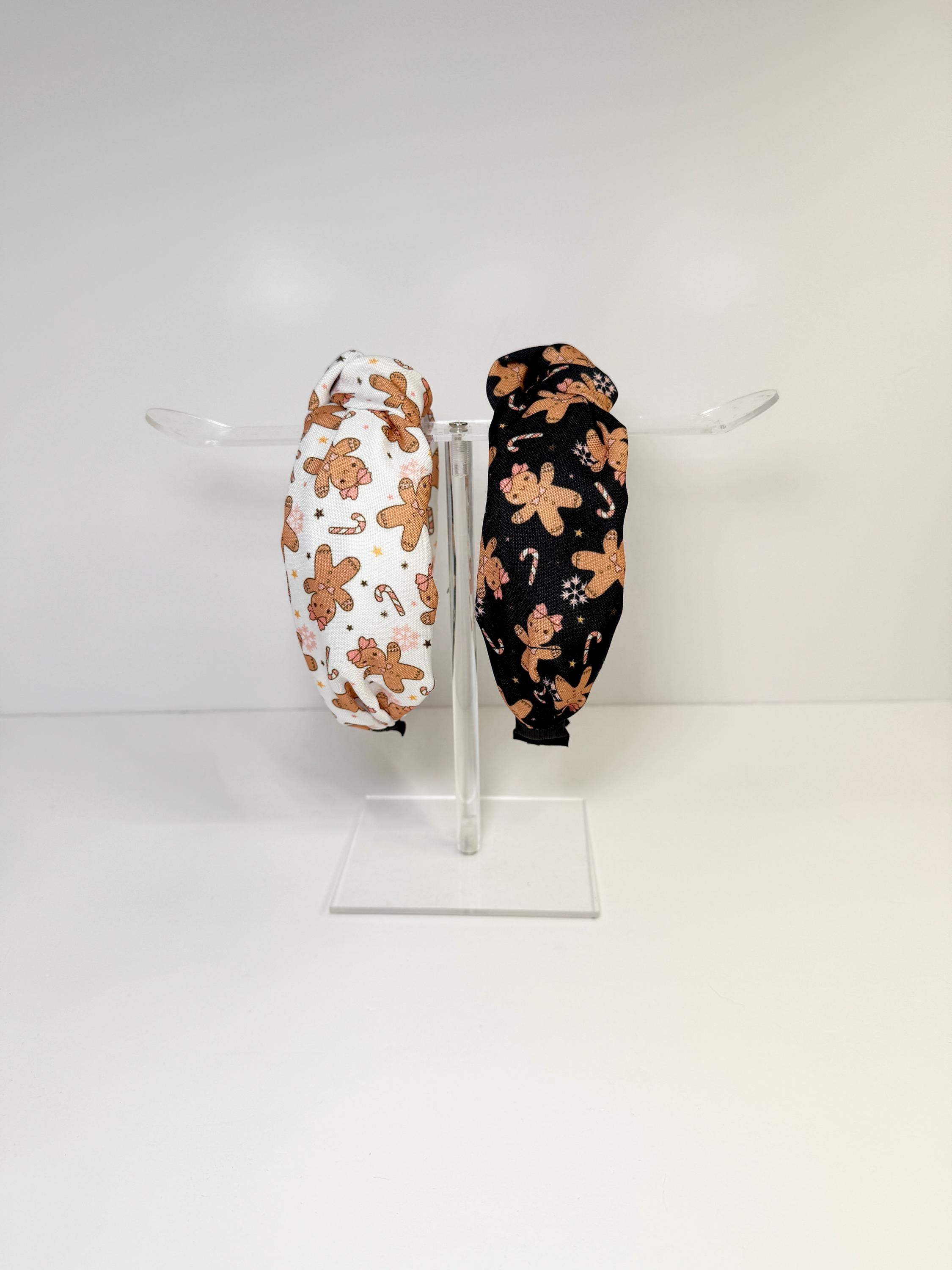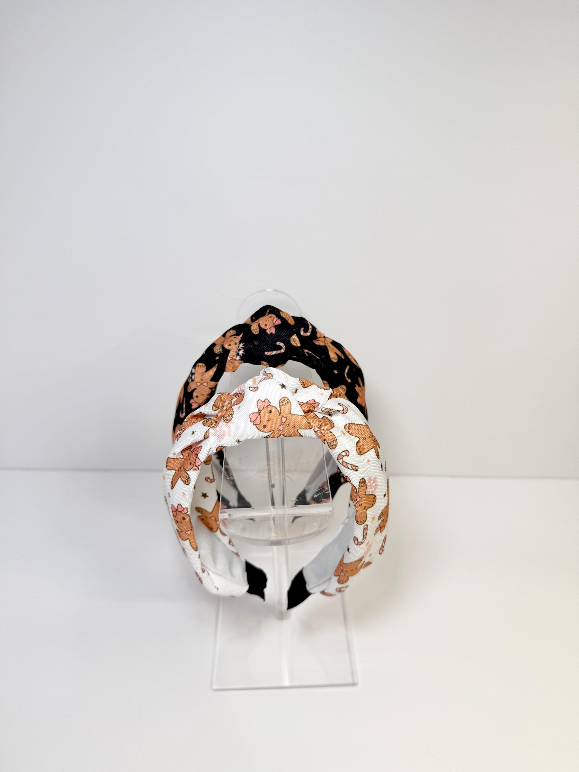 Sweeten up your holiday style with these adorable Gingerbread Man Headbands! Featuring festive gingerbread cookies and candy canes on your choice of a white or black background, these comfy knotted headbands are the perfect way to show off your Christmas cheer — from cookie swaps to cozy movie nights!