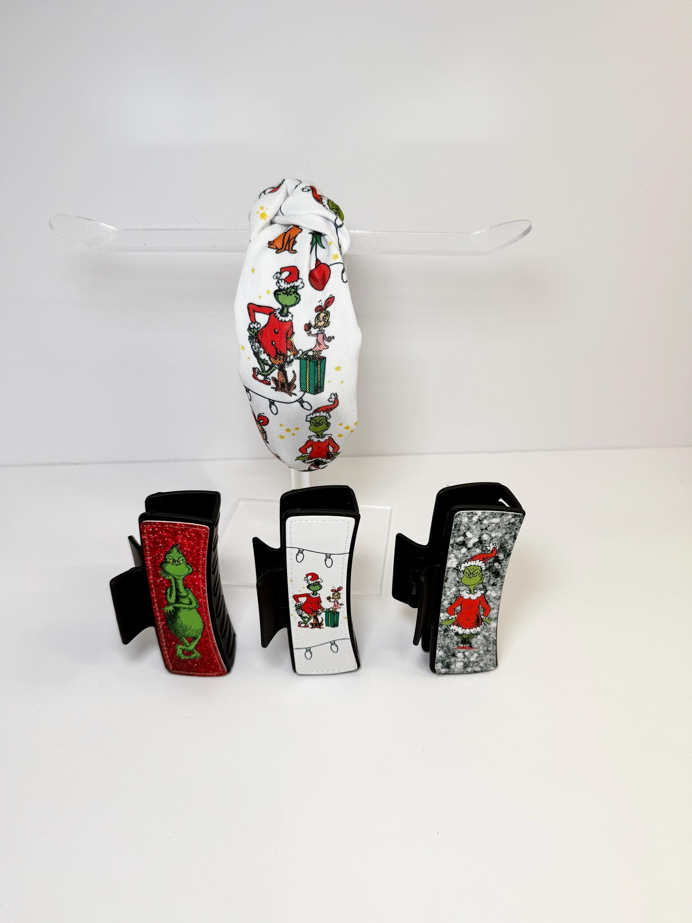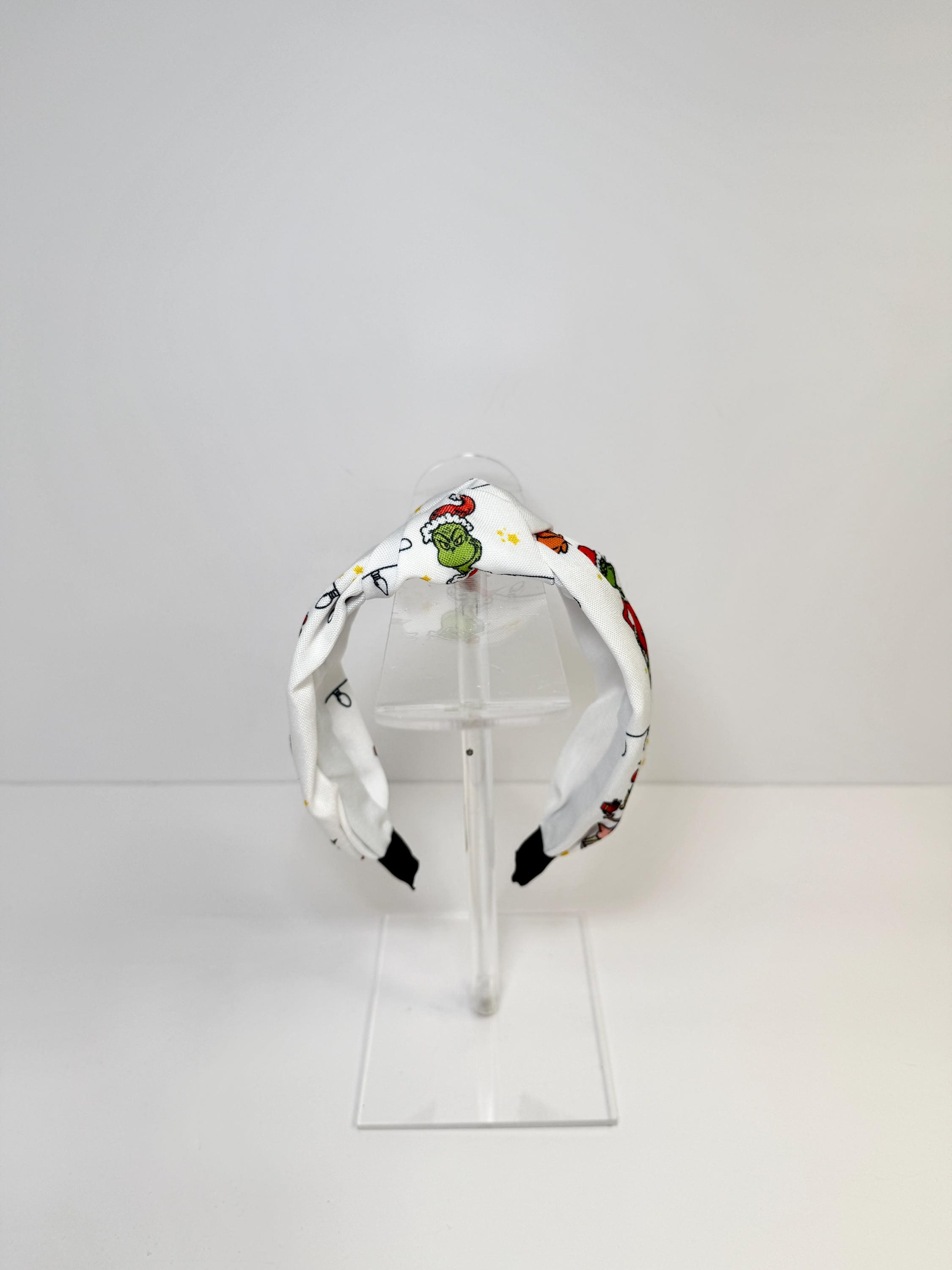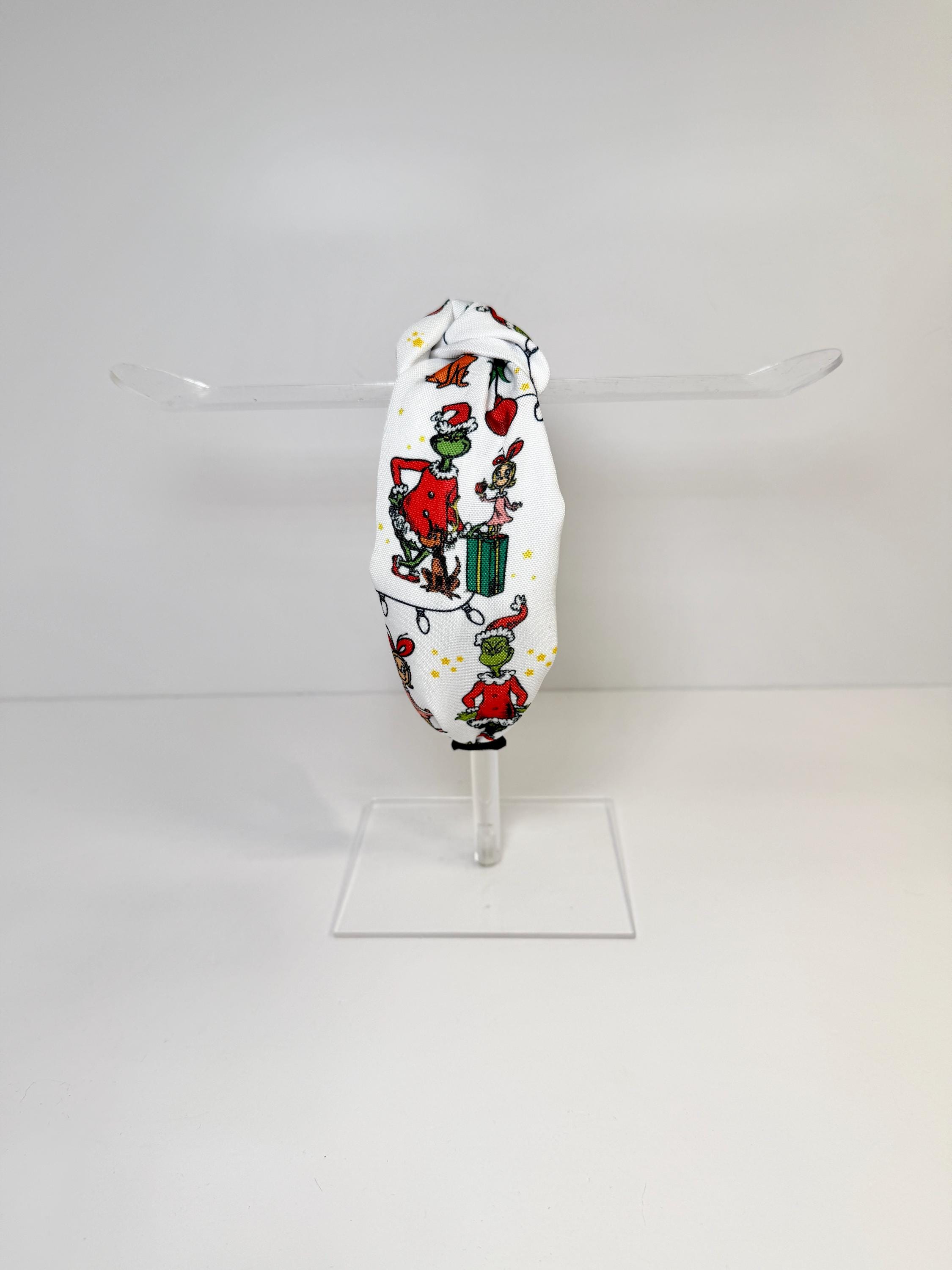 Steal the show (and maybe Christmas too!) with this adorable Grinch Holiday Headband! Featuring your favorite green mischief-maker decked out for the holidays, this comfy knotted headband adds a fun and festive touch to any outfit. It’s the perfect accessory for holiday parties, movie nights, and every Who down in Whoville!