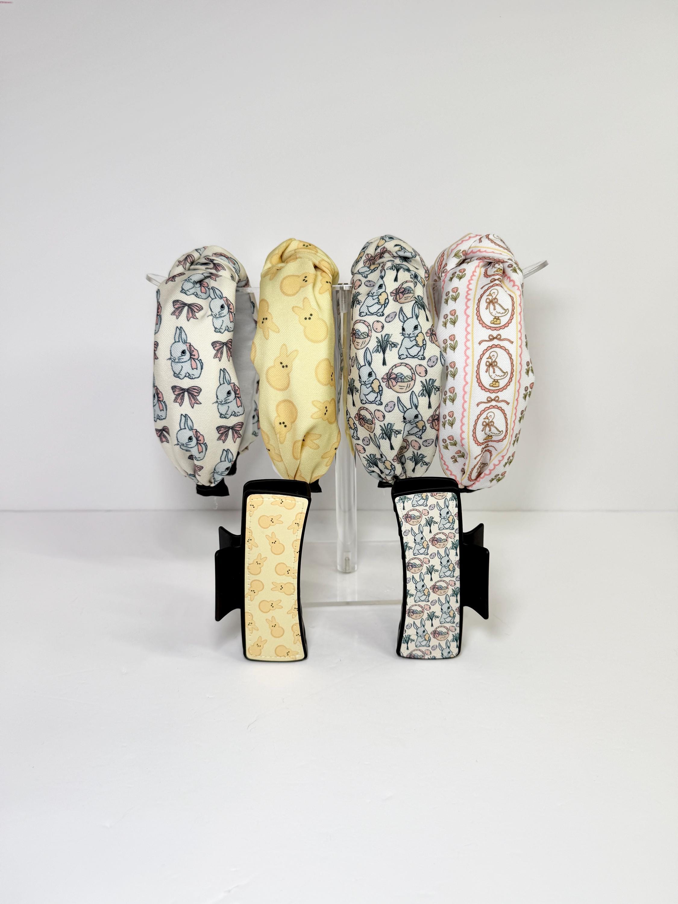 Hop into spring with these adorable Easter Claw Clips! Featuring sweet pastel bunnies and chicks, these clips are perfect for Easter baskets, egg hunts, or springtime styling. Sold separately—choose your fave or grab the whole set to match your Easter headbands.