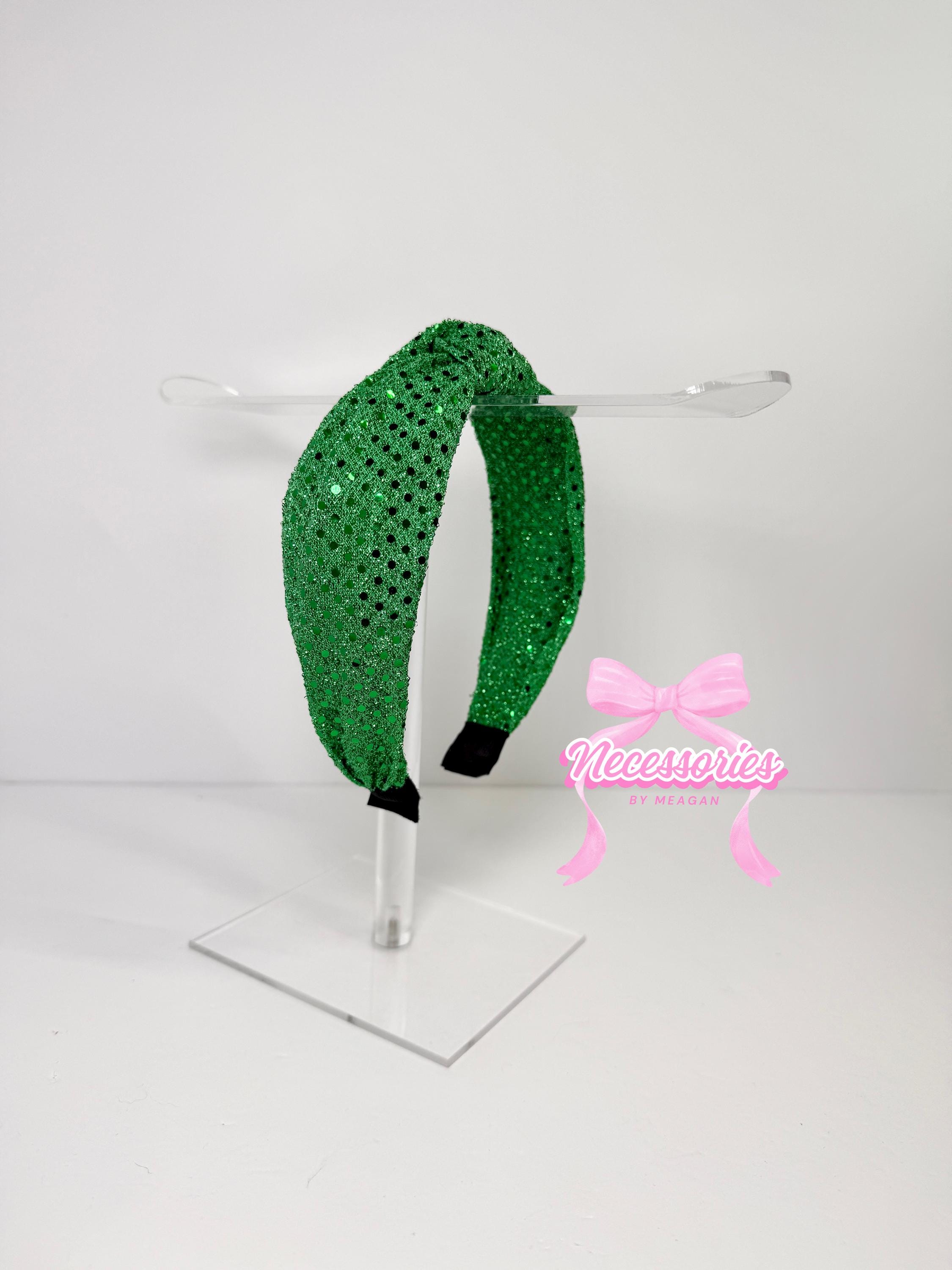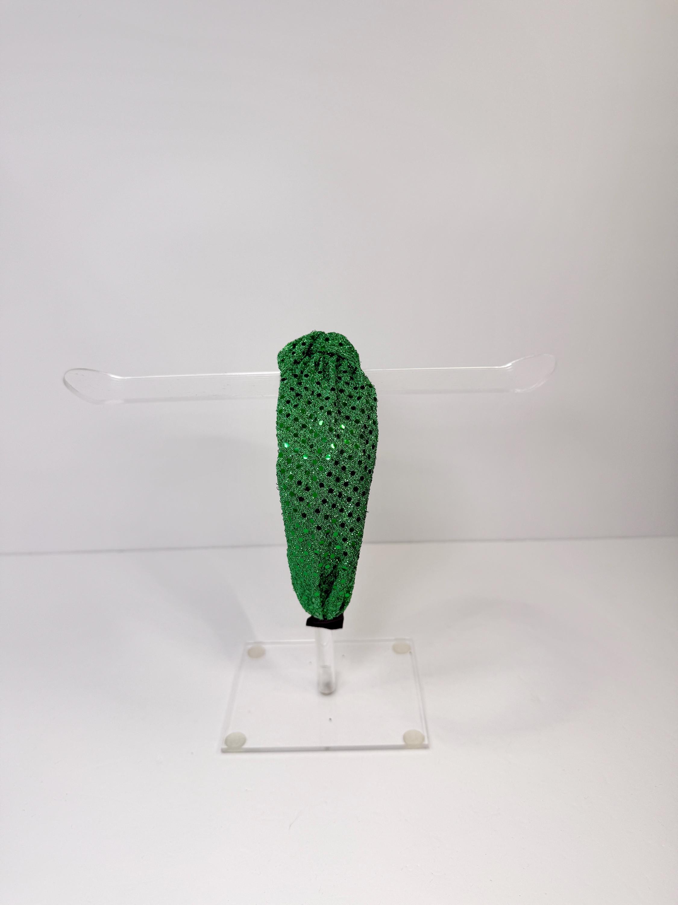 This Green Sequin Knotted Headband brings the sparkle with a fun, eye-catching shine. Whether you’re celebrating, cheering on your team, or just love a statement accessory, this headband is a must-have.